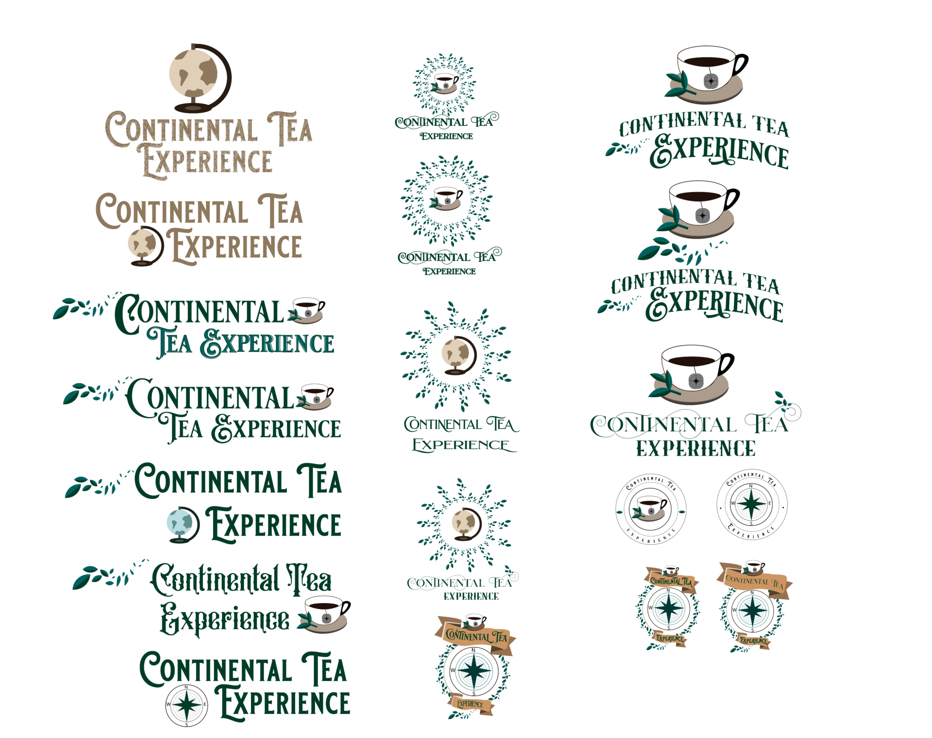 Word mapping was conducted to brainstorm what images came to mind with “Continental Tea Experience.” This helped to inform the sketching process. Sketches were constructed in Procreate to conceptualize the logo possibilities.